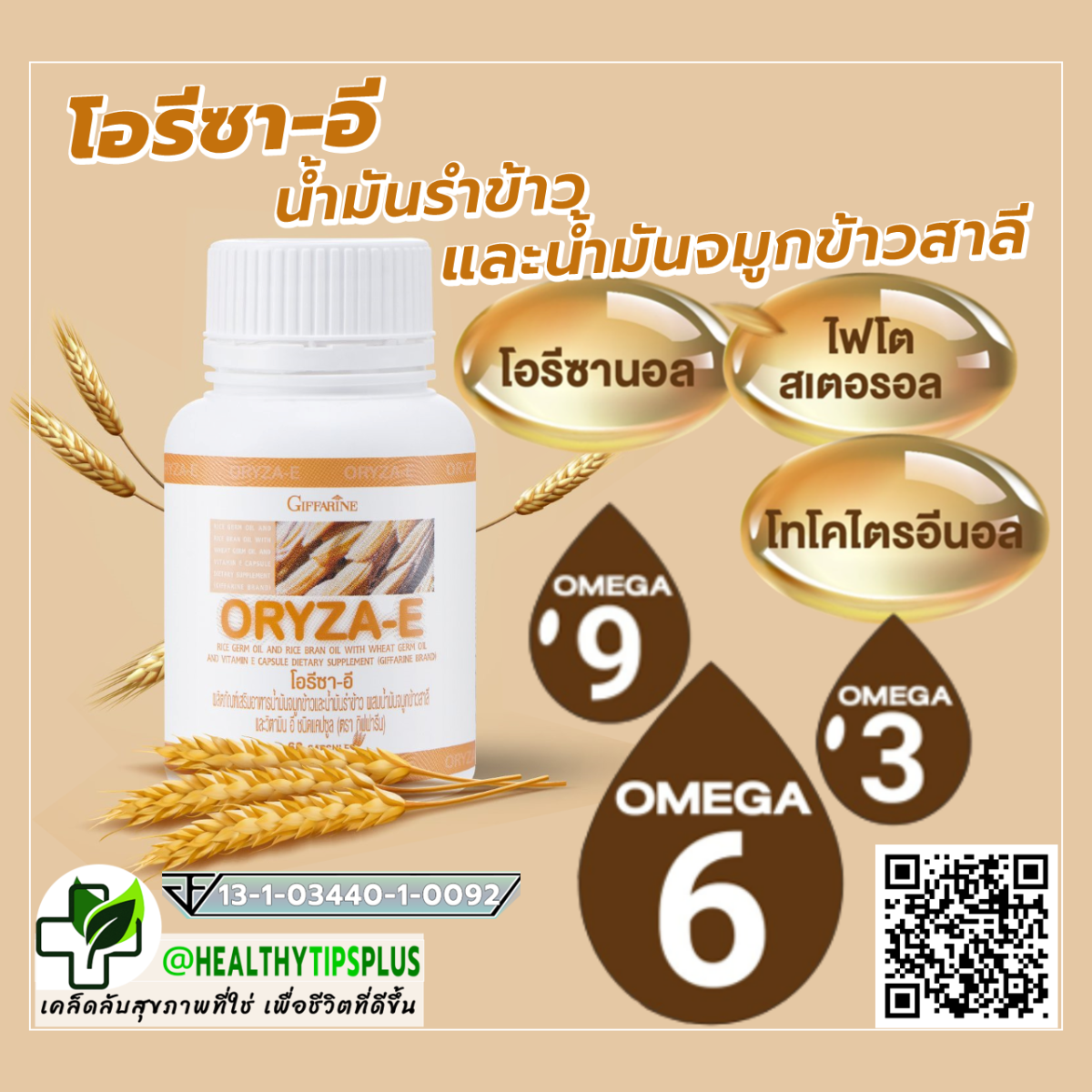 ผลิตภัณฑ์เสริมอาหาร นํ้ามันจมูกข้าวและนํ้ามันรำข้าวผสมนํ้ามันจมูกข้าวสาลี และวิตามินอี ชนิดแคปซูล ตรา กิฟฟาริน