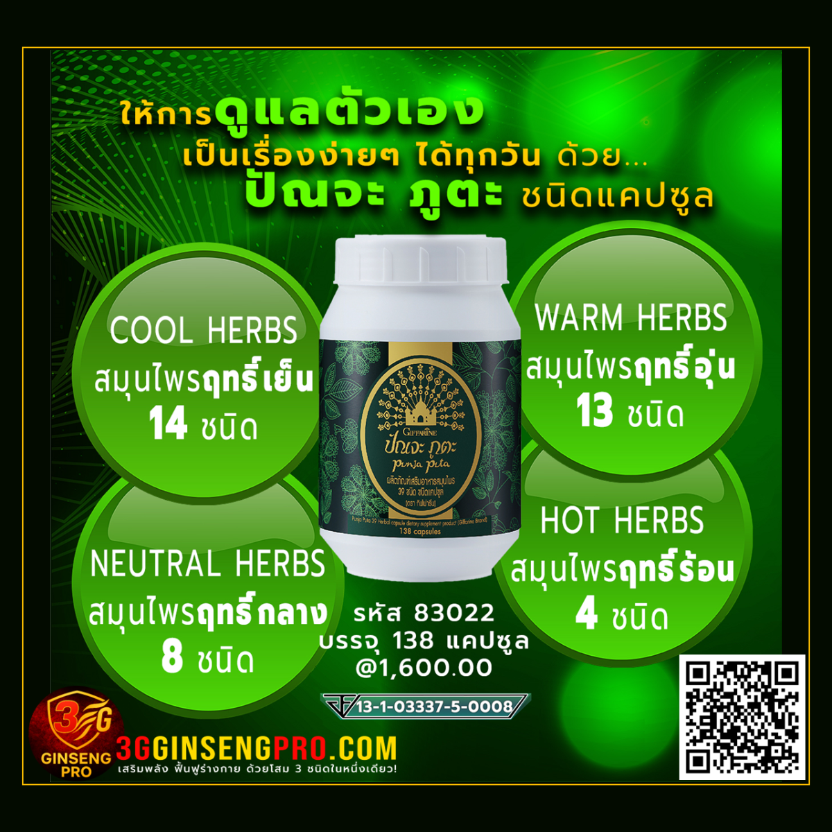✓ ทั้งนี้ ยังคงประสิทธิภาพเทียบเท่าการรับประทานในรูปแบบน้ำ สมุนไพร 39 ชนิด ช่วยปรับสมดุลร่างกายทั้ง เย็น กลาง อุ่น ร้อน ให้สอดคล้องกับธาตุเจ้าเรือน และพลังหยิน-หยาง