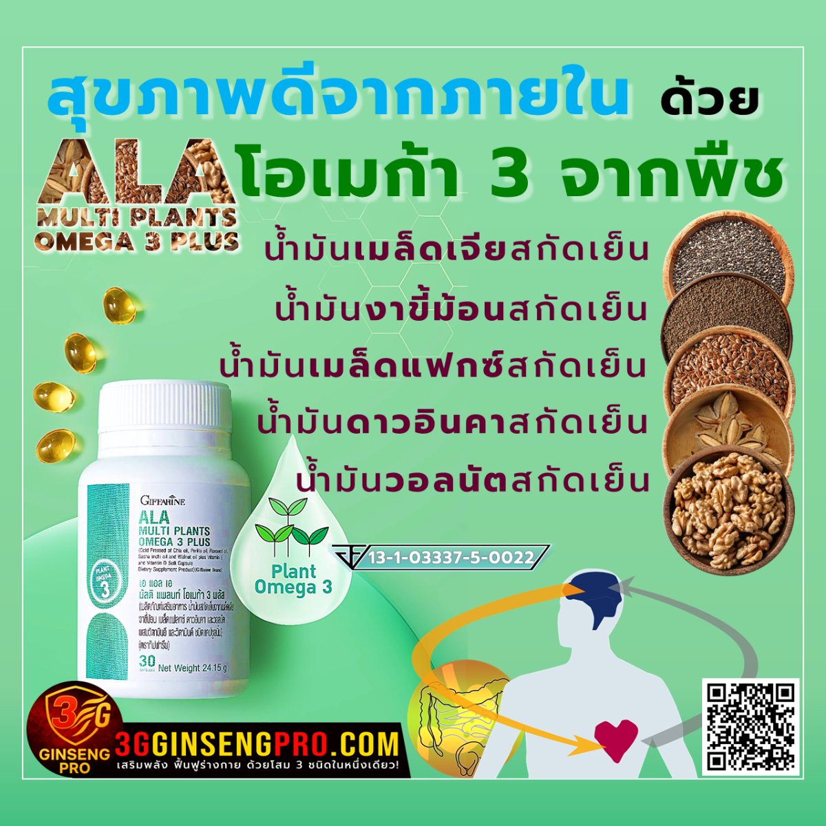 ◕ สุขภาพดีจากภายในได้ด้วย ALA โอเมก้า 3 จากพืช
