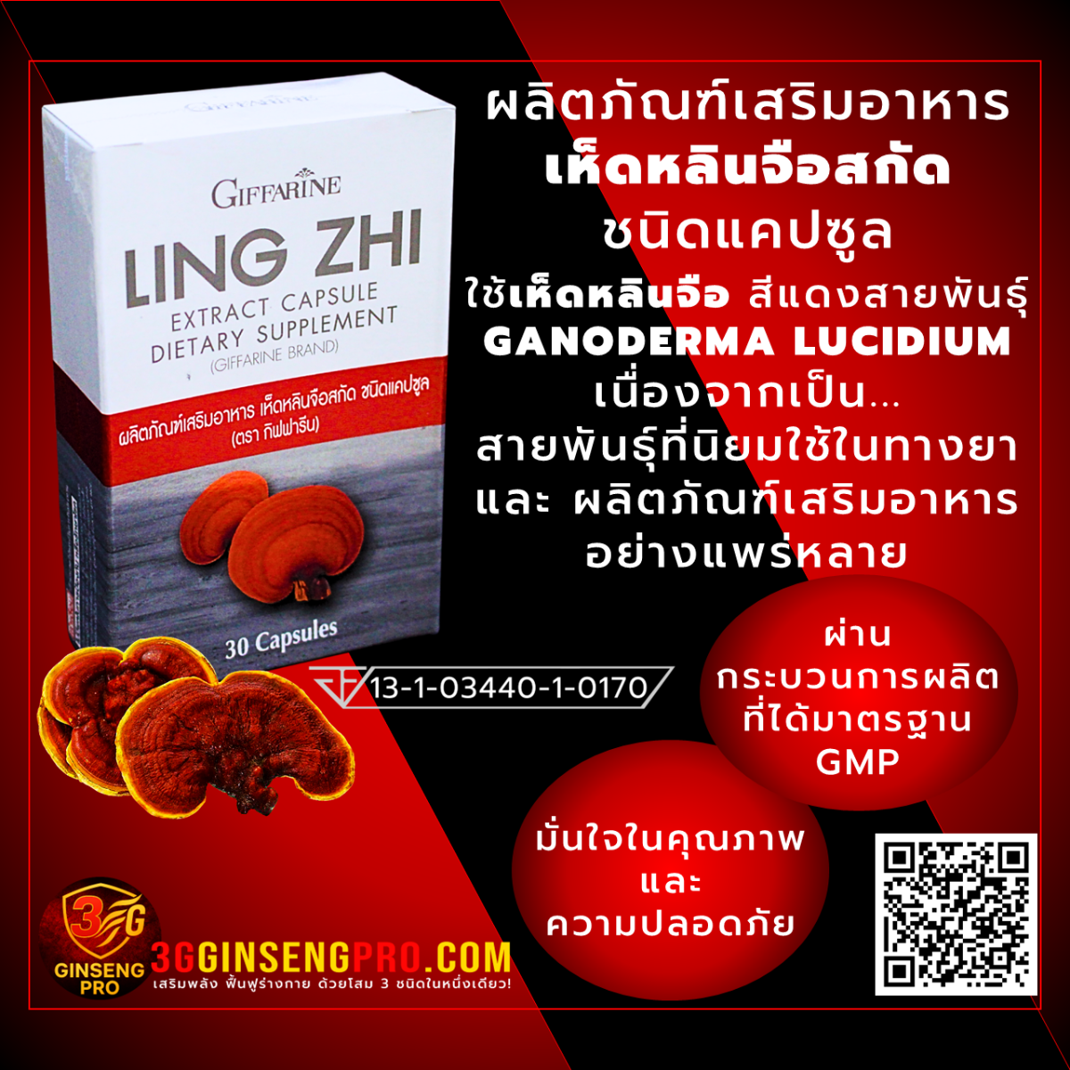 ◉ ผลิตภัณฑ์เสริมอาหาร เห็ดหลินจือสกัด ชนิดแคปซูล ตรา กิฟฟารีน