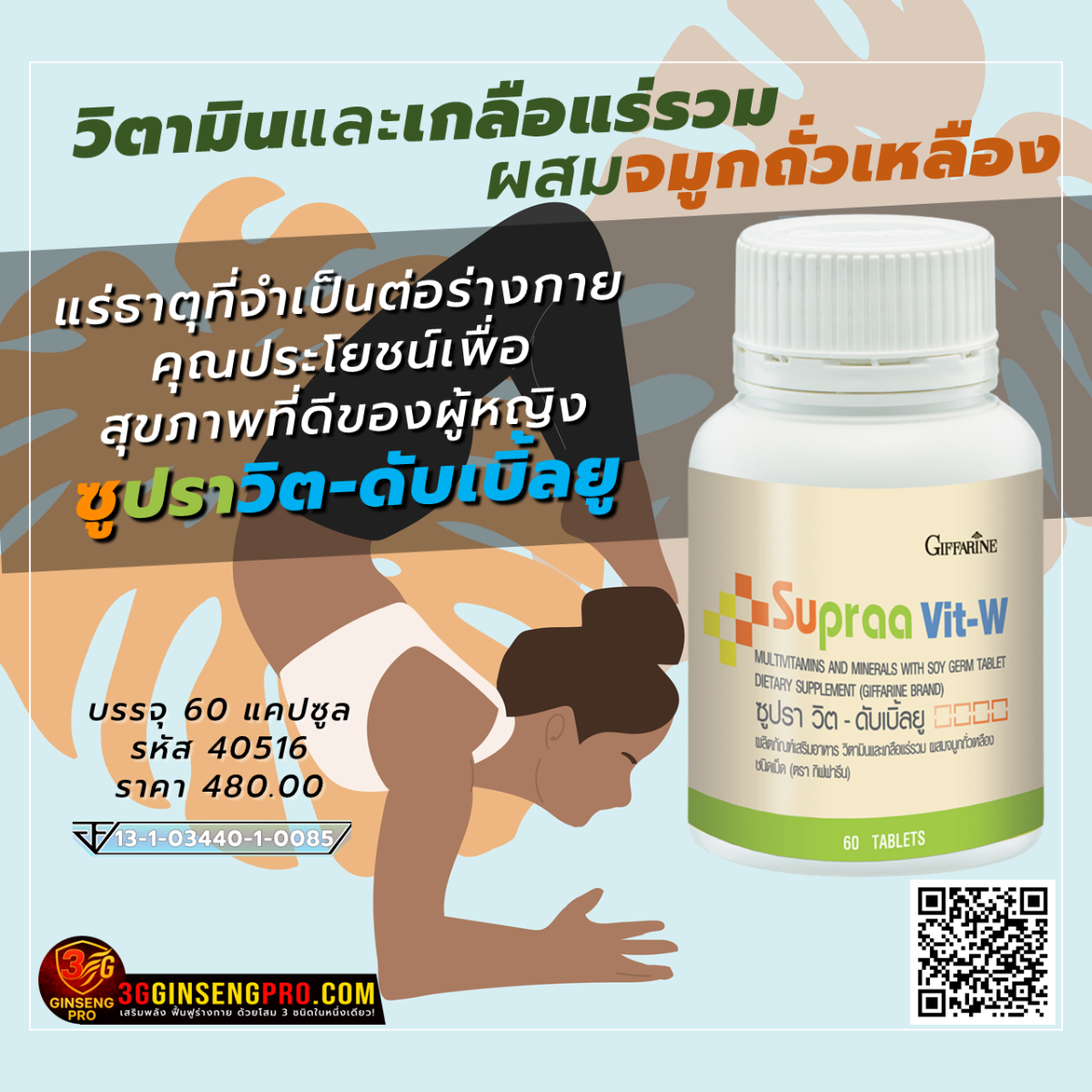 ✦ ซูปราวิต-ดับเบิ้ลยู ผลิตภัณฑ์เสริมอาหารวิตามินและเกลือแร่รวม ผสมจมูกถั่วเหลืองชนิดเม็ด ตรา กิฟฟารีน