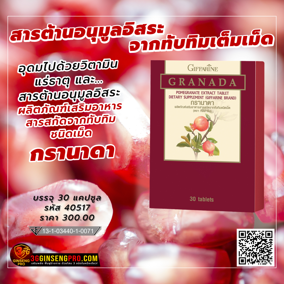 ✦ กิฟฟารีน กรานาดา ผลิตภัณฑ์เสริมอาหาร สารสกัดจากทับทิม ชนิดเม็ด (30 เม็ด)