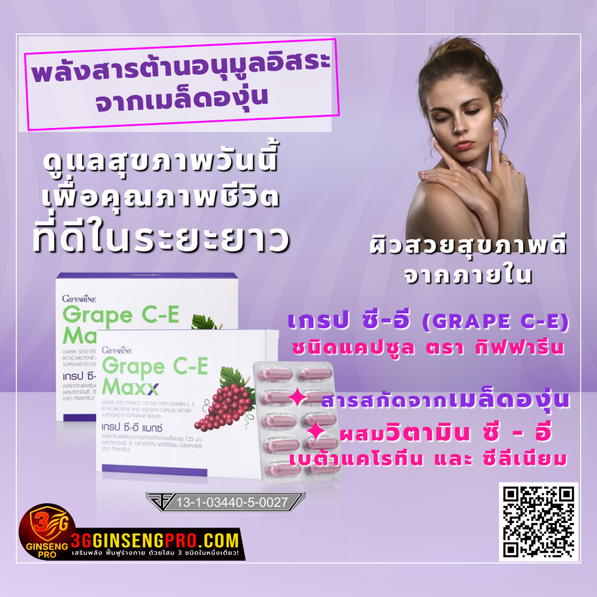 ✧ เกรป ซี-อี แมกซ์ (GRAPE C-E Maxx) ตรา กิฟฟารีน เข้มข้นกว่าเดิมถึง 2.5 เท่า คืออีกหนึ่งทางเลือกของผลิตภัณฑ์เสริมอาหาร ที่ผสานสารสกัดจากพืชธรรมชาติ พร้อมวิตามินและแร่ธาตุสำคัญไว้ในแคปซูลเดียว